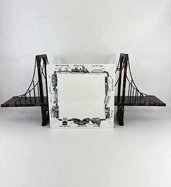 ~Classy Pittsburgh Keepsake :::: Large White Square Serving Platter by ‘The Dish’ -featuring black/gray hand drawn landmarks of Pittsburgh around the edge of the plate
