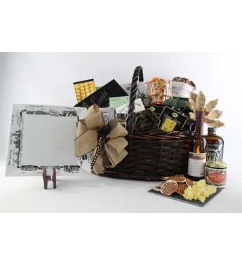 Classy Pittsburgh. This oversized basket is an exquisite gift. It is designed to be a very high end gift with the best products and unique keepsakes. If you want to make a grand impression, Pittsburgh style, this is the gift to choose.