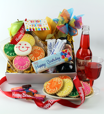 Birthday Party Box. “Happy Birthday to you” is the most traditional jingle…. But, there are many others who have made their musical contribution to this very special day. It is an impressive list that includes top artists like THE BEATLES, Stevie Wonder, Loretta Lynne, 50 Cent, Destiny’s Child and even Weird Al Yankovic! As well, this gift has an impressive list of items! It is fresh, fruity, healthy, colorful, sweet and unique!