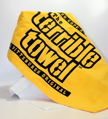 The Terrible Towel. The rally fan towel originated in the ‘Burgh by Myron Cope. Steeler Nation is widespread and Terrible Towels are all over the world!