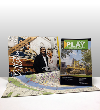Pittsburgh = Big enough to matter. Small enough to care. One of the friendliest cities in the United States! This little customization is a nice add on with impressive, informative and colorful literature, calendars and maps by VisitPittsburgh and a classy “Welcome to Pittsburgh” ribbon.