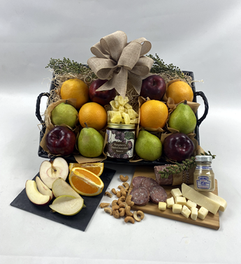 cold cooked meats collectivelyMeat and Cheese boards are all the rage these days. Like many traditional foods that are making a comeback, charcuterie is a culinary art developed from necessity; it is the way meats were preserved long before the days of refrigeration. And just like pickles, fermented vegetables, home drafted beer, broth and kombucha, charcuterie has been revived and brought front and center by the traditional food movement. This fancy and fresh gift is a nod to its newfound popularity. It has the best of both worlds with meat, cheese, fresh and dried fruits and dipping sauces. A popular gift for many occassions!