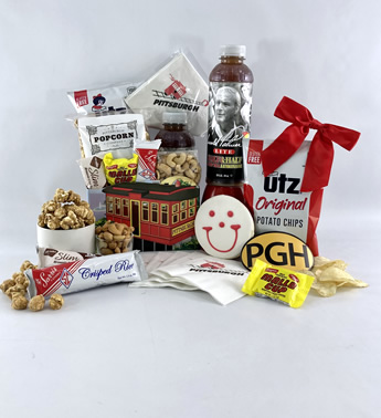 Pittsburgh Pride. There isn’t any other gift around that bursts with Pittsburgh Pride like this one! This gift is packed with a top-notch sampling of the city’s most popular brands. Sarris, Eat n Park, NuGO, Pittsburgh Popcorn, etc…..Send this to someone you care about today and they will surely be INCLINED to smile when they receive it! *This is a very popular “Welcome to Pittsburgh” gift and widely used for local conventions. This can be customized by adding a “Welcome to Pittsburgh” ribbon and VisitPittsburgh’s annual SEE & DO Guides and Annual Publications.