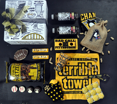 The ONE & ONLY……. PGH-BOX! (Only Available at BOP!) Every PGH-BOX captures and embodies the spirit of Pittsburgh in a simple yet unique way. From the iconic images on the outside, to every ‘Burgh favorite inside, this exclusive box is truly an original – a local one of kind. Every twist & turn of the box brings genuine conversations, happy memories and the occasional internet search! In the end, the results are typically a giggle, a smile or an a-ha moment! It’s not just a gift, it’s an experience. The PGH-BOX is the ultimate gift for any TRUE Pittsburgher (or Yinzer). Near or far, send a smile today!
